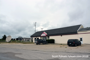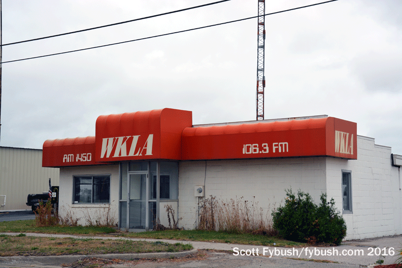 Things were in a bit of disarray when we were in this part of Michigan last August – Synergy Broadcast Group, which owns WKLA, WKLA-FM (106.1), and several other area FMs, was in the midst of moving its studios from the Wallace Lane building shown above at right back into the old US 10 WKLA studios. It was also in the midst of swapping some of its signals on and off the air as it tried to avoid impending CP deadlines; in particular, it appeared that WLDN (98.7) was off the air so its antenna could be used by WKLA-FM. Synergy also owns rock WWKR (94.1 Hart), talk WMLQ (97.7 Manistee) and “Big Dog Country” WKZC (94.9 Scottville); the competition in town is nifty standalone WMOM (102.7 Pentwater).