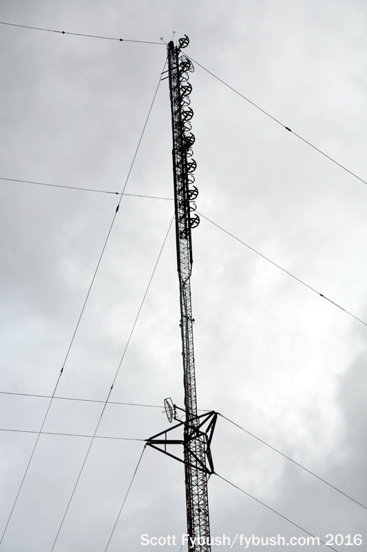 (Look carefully in the background of the WCCW-FM picture, looking northward, and you’ll see WFCX in the background, giving an idea of how closely spaced these towers are in the Traverse City tower farm.)