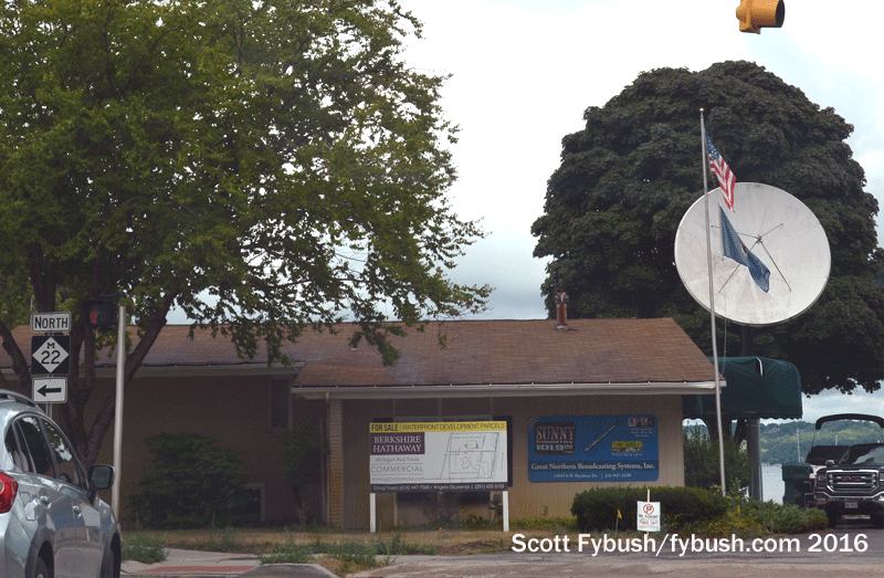 Along M-72 itself, we find the studios of NBC affiliate WPBN (Channel 7) and its Upper Peninsula satellite WTOM (Channel 4, Cheboygan); this Nexstar station now also operates the market’s ABC affiliate (WGTQ channel 29 and U.P. satellite WGTU channel 8) under a shared-services deal. WPBN’s DTV tower, on RF 47, is way out east of here near Kalkaska, Michigan, on a tower shared with WGTQ and public broadcaster WCMV. What’s on the tower behind the WPBN studios? Public radio satellite WNMC (90.7) and “Bob” WZTC (104.5).