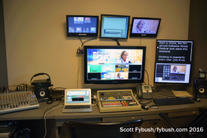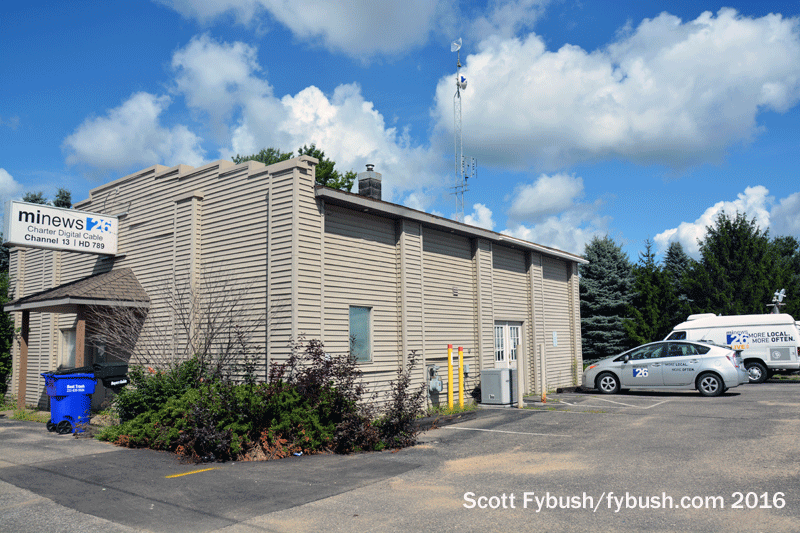 There’s more established commercial competition to minews here, too, of course. Last week, we showed you the Traverse City TV studios that are home to NBC “7&4” WPBN and its Upper Peninsula simulcast WTOM, along with shared-services partner ABC “29&8” WGTQ/WGTU. The CBS and Fox stations in this sprawling market have their studios south of M-115 at the tower of the CBS station, WWTV (Channel 9). (Its Upper Peninsula partner is WWUP, channel 10, and so this too is a hyphenate as “TV 9&10.”)