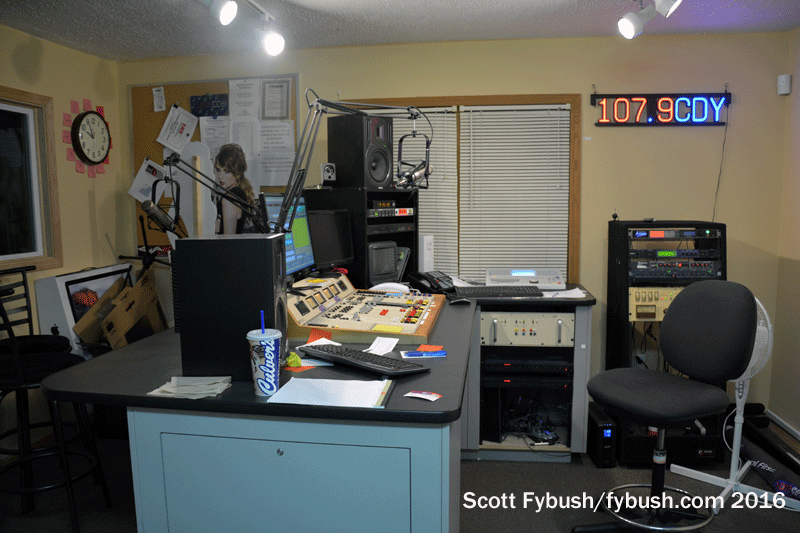 When we visited, WCDY had recently moved to a new studio on the south side of town, just off the M-55 exit from US 131. It’s a compact but functional space, with an air studio in one back corner, a production studio just across from it, and another studio down the hall that was being fitted for what eventually became a sister station, WCKC (107.1 Cadillac). WCKC had been part of a three-station rock simulcast as “The Bear,” but split off under Theodore’s ownership late in 2016 as classic rock “The Drive.”