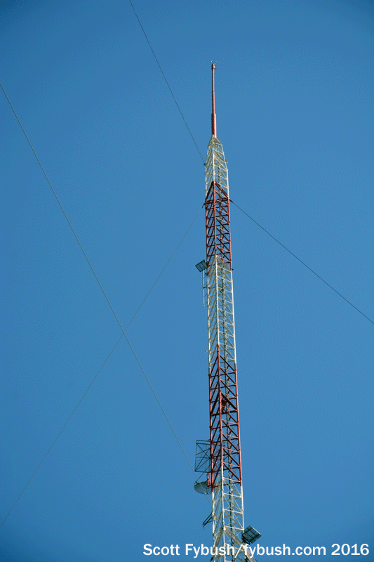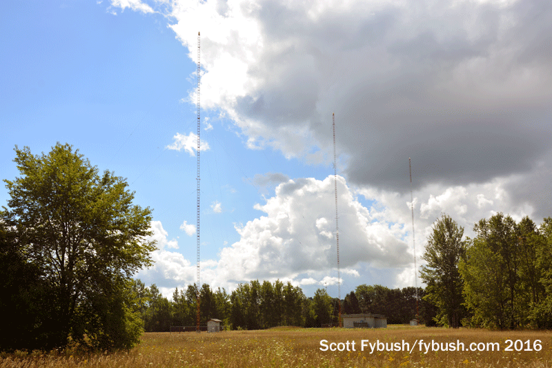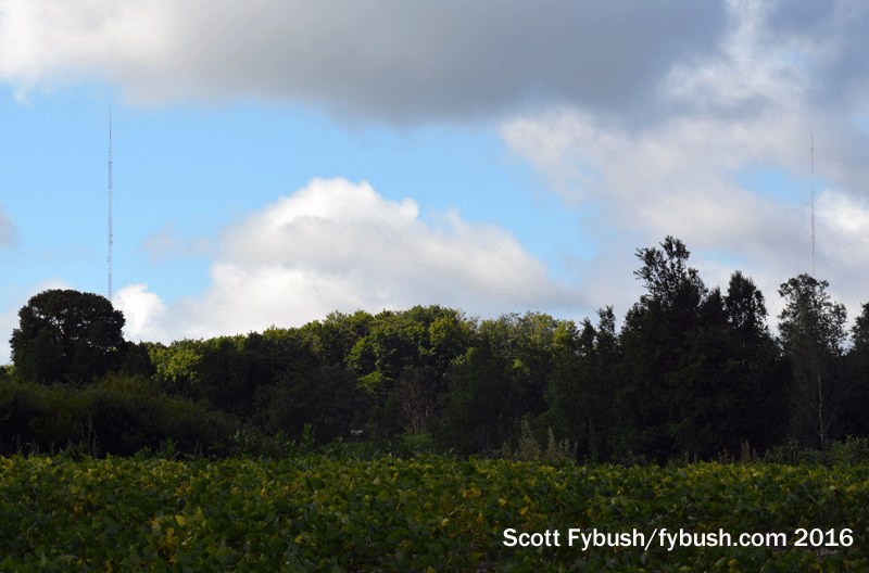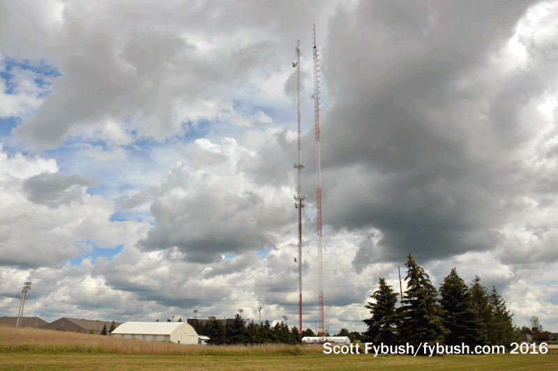 From here, our Sunday morning in August took us south to the college town of Mount Pleasant. On the edge of the Central Michigan University campus sit the towers shared by public radio WCMU (89.5) and its campus sister station WMHW (91.5). WMHW actually operates two signals – AAA “The Mountain” on 91.5 and rhythmic contemporary “The Beat” on 91.5 HD2 and a 101.1 translator, W266BU.