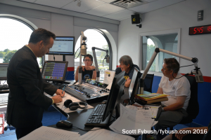Where Freddy used to spin the oldies in the big CJBQ corner studio, the walls are now painted purple and the room is now home to “Mix 97” CIGL (97.1). There’s still a news/talk booth next to that studio, also with new furniture – and what had been the Mix 97 studio next to that is now CJBQ’s studio home, where our US radio crew packs in for an afternoon of fun with Freddy. Just down the hall, red is the dominant colo(u)r at the renovated “Rock 107” CJTN (107.1) studio.
