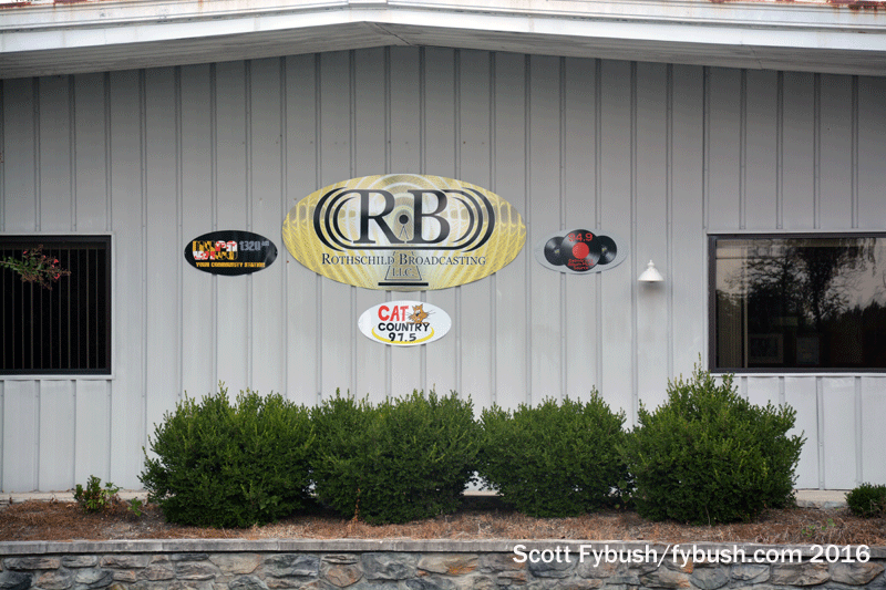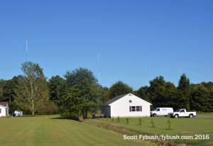 Rounding out the Salisbury AM dial is Rothschild Broadcasting’s WICO (1320), which has studio and transmitter facilities on Ellegood Street, along the west bank of the Wicomico River south of downtown Salisbury. The WICO non-directional AM tower also holds sister station WKTT (97.5) – and the signage on the building on this August day in 2016 also promoted “94.9 Oldies,” the construction permit for WAMS-FM (94.9 Newark MD), a signal that has still yet to sign on as of this writing more than half a year later.