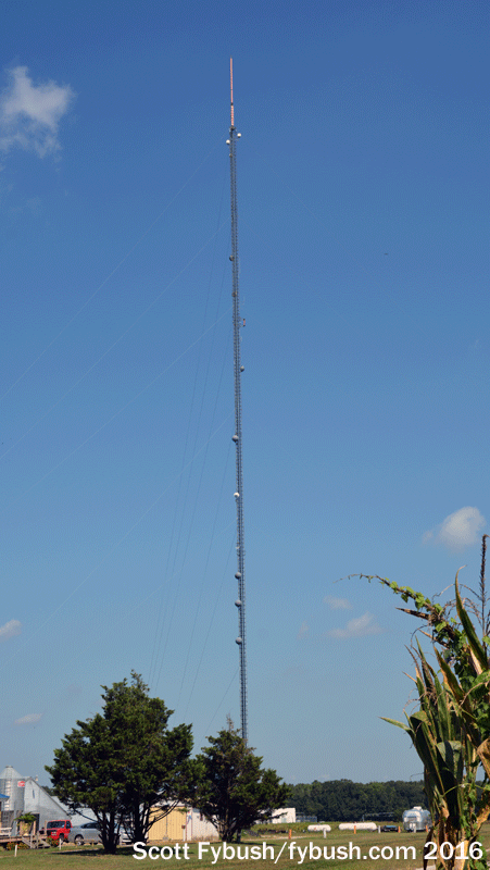 Among those studio visits was public broadcaster WSCL (89.5)/WSDL (90.7) – and this drive took us past the WSDL tower near Roxana, Delaware (inland of Bethany Beach) before crossing the Maryland line and passing the two-tower site that’s home to WQHQ (104.7 Ocean City-Salisbury) and WRAU (88.3 Ocean City), the local relay of DC public broadcaster WAMU.