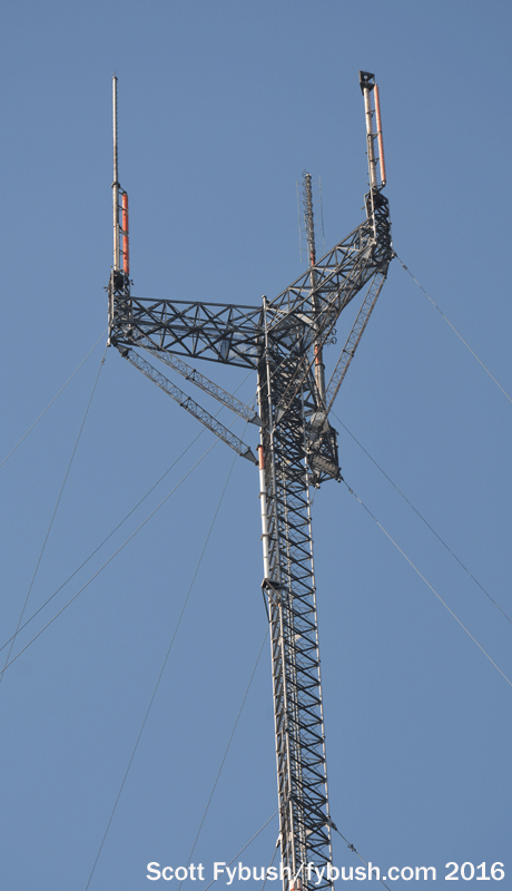 From this site, we can look just a little bit north to another big candelabra, home to more UHF signals: ion’s WNPX (Channel 28/RF 36), TBN’s WPGD (Channel 50/RF 33) and a bunch of LPTVs, plus Cumulus’ WGFX (104.5) on a panel antenna beneath the candelabra.