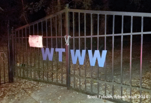 There are three towers here, one east of I-24 and two to the west, and we’re headed for the southern one on the west side, reached down a narrow drive off Brick Church Lane that eventually becomes a dirt road headed uphill.