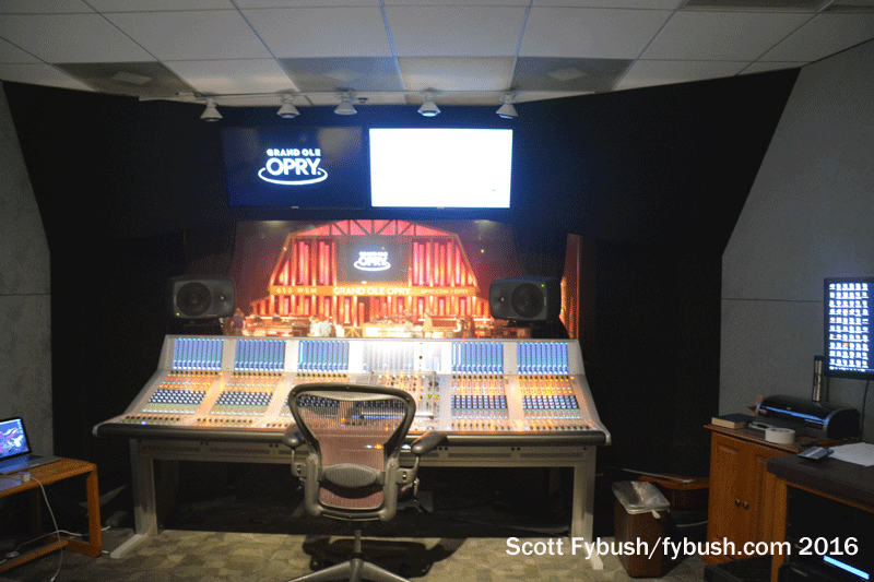 Upstairs, the control rooms for the Opry broadcasts have a million-dollar view of the stage, handling audio for the WSM and satellite radio broadcast as well as video for the TV simulcast.