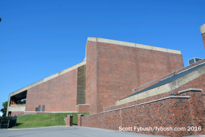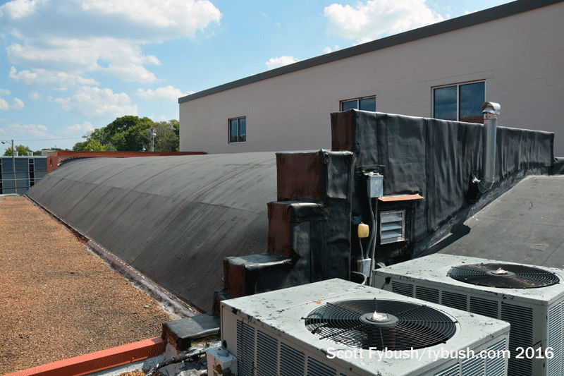 Look carefully behind the building and you can still see a bit of the roof of the original Quonset Hut structure, and if you’re lucky enough to be able to arrange a tour, you might even be able to get up on the roof and see more of the old hut up close.