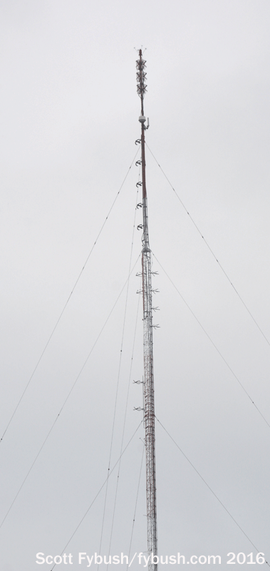 This 470-foot tower has a lot going on, crowned at the top by the antenna for WMFD’s digital signal on VHF channel 12.