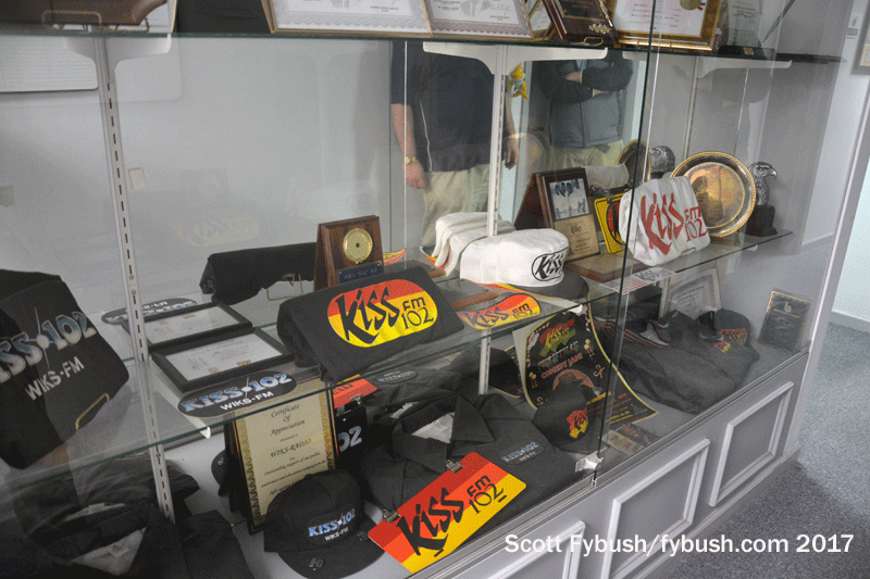 The king of the hill here, though, is the original station in the building: WIKS (101.9 New Bern) dominates the ratings with its R&B format, and unlike the older Auditronics boards in the other studios, its digs include a brand-new IP-12 console from the Wheatstone plant just down the road. Kiss’ history is documented in a display case in the hallway near the sales department, and its big coverage of the region is celebrated with a fancy coverage map, too.