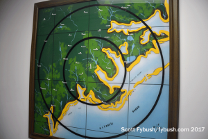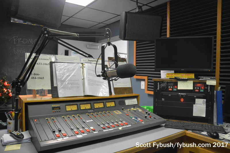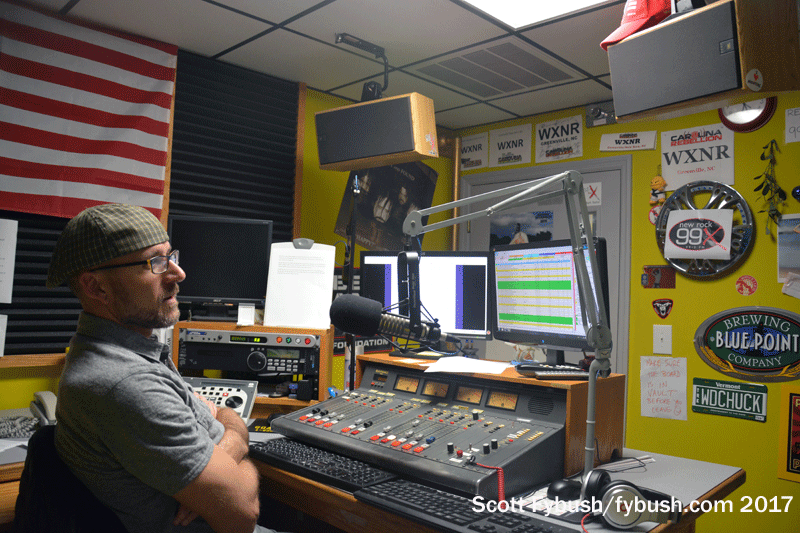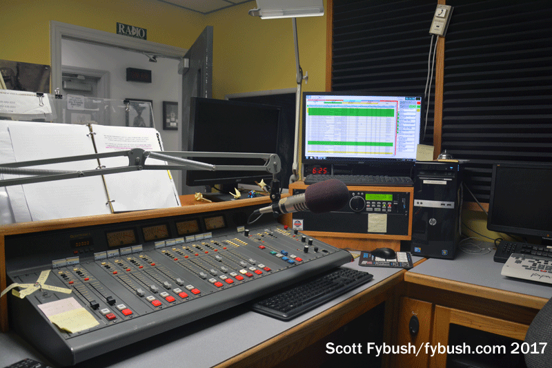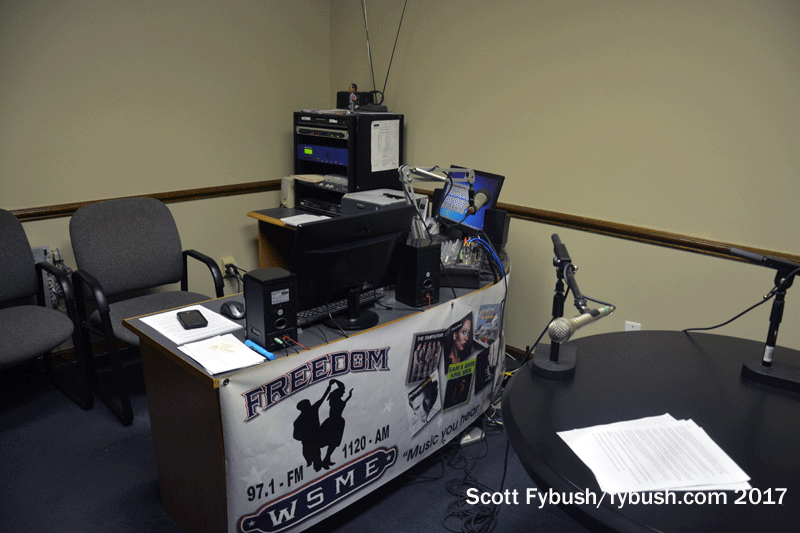 From here, we head to dinner down in Jacksonville, 30 miles or so to the south down US 17 – and after dinner, we check out one of the quirky small-market voices here. WSME (1120 Camp Lejeune) operates from a little second-floor space in an office complex right off the main drag on New Bridge Street, with a stripped-down studio (that’s just a Mackie mixer on the table!) that feeds “Beach Radio Network” oldies to both “Freedom 1120,” WSME and its 97.1 translator, along with “Beach 94.1,” WLSG (1340) down the coast in Wilmington and its 94.1 translator.