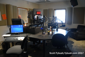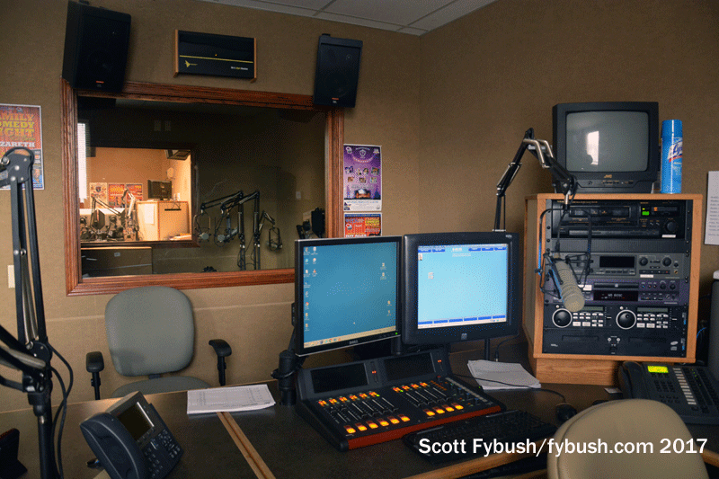 This studio’s entrance is around the corner, down a hallway that also leads into several other studios, including a talk studio that can be controlled by either this control room or another control room behind another window, which runs Christian preaching/talk KCRO (660) and its translator on 106.5.