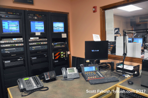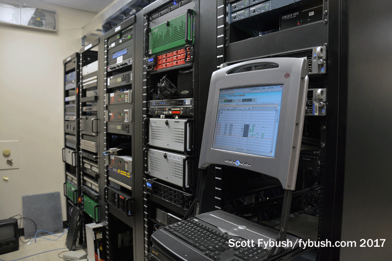 Off to one side of the studio cluster here is a neat master control area that’s rare in the radio universe: in front of a desk that’s equipped with a small console connected to the cluster’s Logitek digital network are racks holding the automation for each station, making it super-easy for an operator to manage any or all of them as needed.