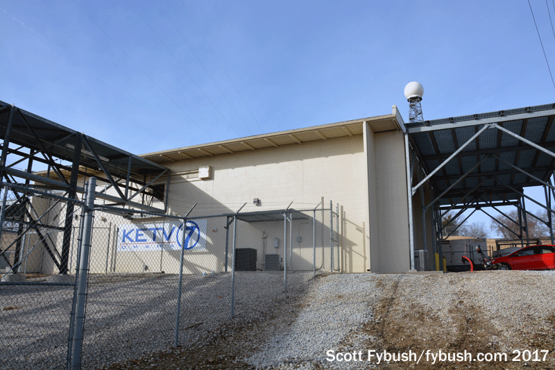 KMTV’s original 1960s-era analog transmitter building didn’t have enough room for the DTV conversion, so channel 3 built on to the front of it, doubling its space to create a big new transmitter room where its channel 45 transmitter now sits (and where a new transmitter will go after the repack clears channel 45 in a few years and KMTV slides down to RF 31.)