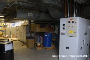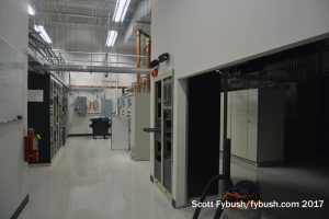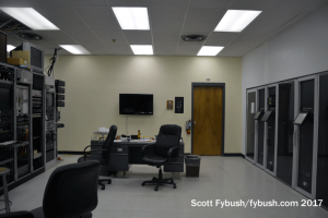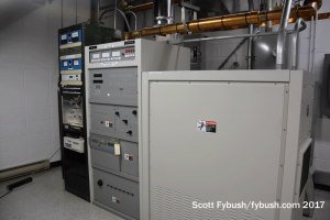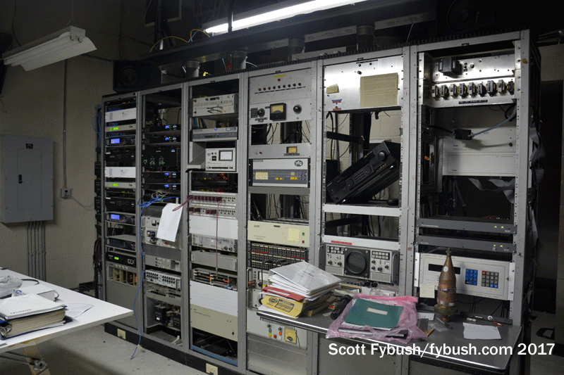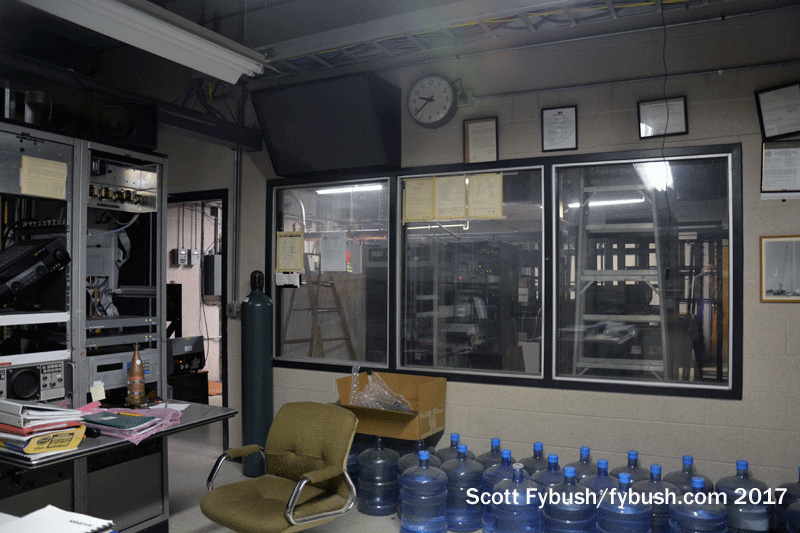 The end of analog left the old part of KMTV’s building mostly empty, with some racks of legacy equipment and storage but nothing left of the analog 3 transmitter that was once a frequent E-skip visitor in the summertime here in Rochester. (The old channel 3 batwing still sits up top, though!) Peer through the old control room windows and you can just make out an aux (and former main, I think) for Scripps’ KSRZ (104.5).