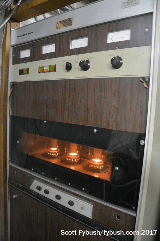 Out here in south Council Bluffs, you’d almost never know it’s 2017 or that you’re just a 10-minute drive from urban Omaha across the river. The old McMartin transmitter is still out here and still runs, woodgrain vinyl and all, though the Nautel to the right is usually powering things these days. The two-tower array still runs a kilowatt by day and drops down to 330 watts at night, and the phenomenal ground conductivity means 1420 does a nice job covering the metro even with relatively low power.