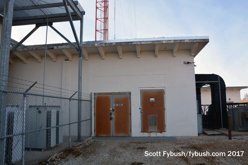 The KETV tower had also just become home to NET public television’s KYNE (Channel 26) when we visited. KYNE’s old tower at the UNO campus was about to come down (don’t worry – we saw it and we’ll show it to you next week), and there’s a compact new shelter next to the KETV building that houses KYNE’s RF 17 transmitter.