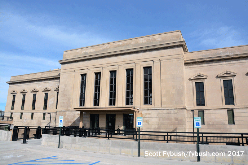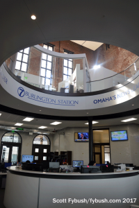 The design of what’s now known as “7 Burlington Station” even incorporated some recognition of that vacant period – the station’s break room, across the waiting room atrium from the main entrance, preserves some of the graffiti art that filled the building in the 1990s and 2000s. This being Omaha, the bottom part of the art was tiled over so as to cover up the, er, naughty bits…
