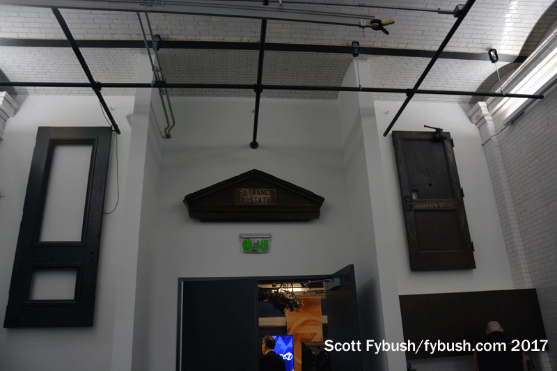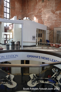Nowadays, those doors are used by reporters and photographers heading out to waiting news cars parked at track level, below the main KETV parking lot and entrance; when they exit, it’s under some of the original ornamentation from the station. Where the doors on the north side used to lead out to the tracks, there’s now a glassed-in conference room adjoining the main newsroom.