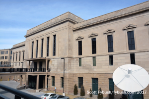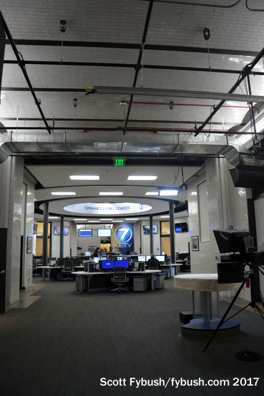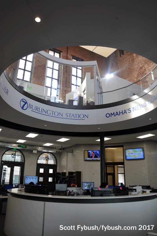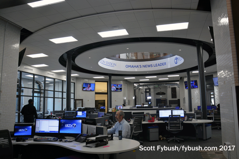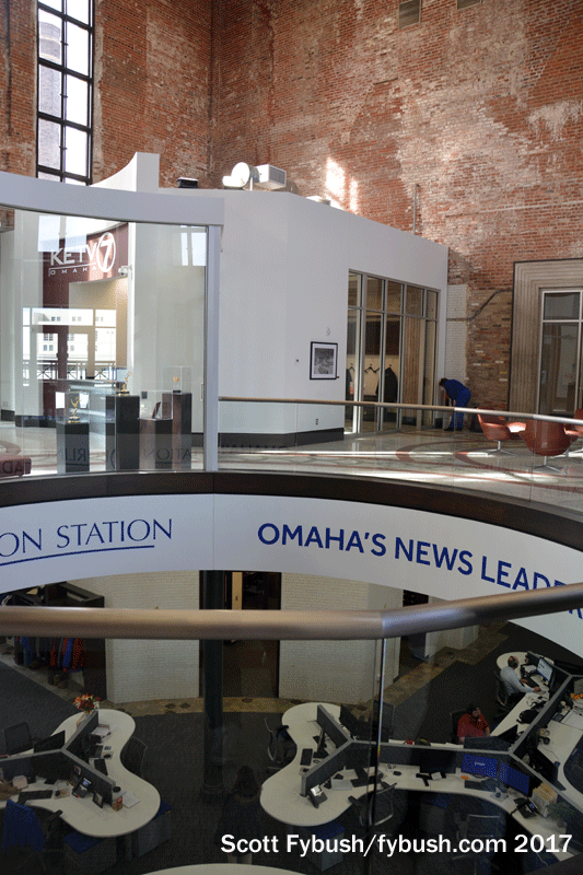 On an earlier visit to Omaha, we’d toured the longtime home of ABC affiliate KETV (Channel 7) at 27th and Douglas just west of downtown Omaha. That building (and the tower next to it) went up in 1957 when KETV went on the air, but as development grew in the area, KETV owner Hearst went looking for a new home and ended up renovating a long-vacant city landmark.