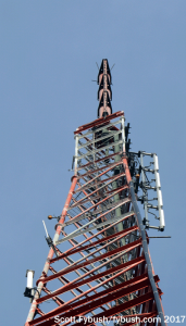The 350-foot self-supporting tower was a tiny blip on the Omaha skyline compared to the big TV towers in the Crown Point farm to the northwest that we showed you last week, but it holds an important place in our heart – it was from this tower that a young Mrs. F. first saw “The Electric Company” and other PBS programs in the early 1970s when visiting her grandmother in Omaha, back when her hometown didn’t yet have a public TV station.
