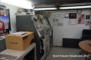 We didn’t get in to the empty old KYNE transmitter room, but the warren of hallways that leads back from the doors near the tower base take us through UNO’s in-house TV operation, UNO TV. Its studios date back to the days when the state of the art dictated that a control room should have big windows looking right down on the studio floor – and the back rooms include a museum of vintage technology such as that 2″ quad VTR shown above at right.