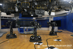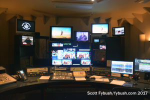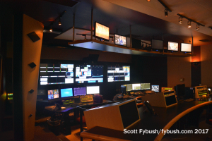 The sleek studio news set wraps around in nearly a full circle; down the hall, the newsroom was getting ready to add a 10 PM newscast once CW arrived on 8.2. The control rooms here, just off the front lobby, are impressive as well, especially the production control room that’s almost as spacious as some of the network control rooms we’ve been in lately.