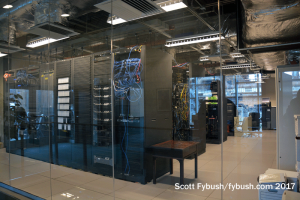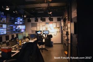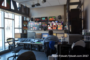 The rack room for the station is right at the top of the stairs; back downstairs, the middle of the building is a big studio for WLVT’s local productions and other contract work, with a control room across the hall next to an open office area for WLVT’s staffers.