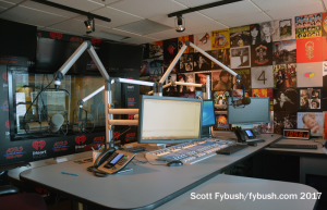 A few months after our visit, KBPI migrated up the dial to 107.9, combining an iHeart-owned full-power signal up north in the Fort Collins market with another iHeart signal down south in Pueblo and, most critically, a Denver translator, all synchronized on the same frequency. Its old 106.7 frequency was reborn as country KWBL, “the Bull,” and I’m not sure who’s in what studio except the KBPI morning show, which is still down here in the showroom.