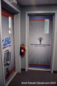 CIGL’s old studio across the hall is now CJBQ’s, with a talk studio in between. (The door to that studio now proudly proclaims it to be the home of the Lorne Brooker Show, a local morning institution.)