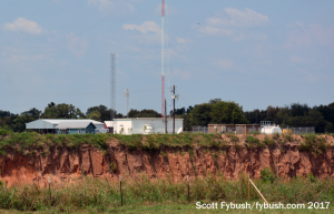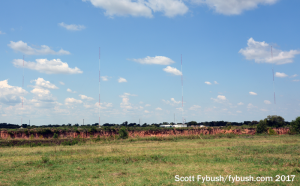 Even before we made it to iHeart’s south Austin studios, we’d already started checking off transmitter sites from our list. Austin’s not a big-signal AM market (the biggest AMs in the state went north to Fort Worth and Dallas or southwest to San Antonio), but the largest AM in town, Emmis’ news-talk KLBJ (590), is at least fairly respectable in its coverage, as you’d expect for a station formerly owned by a U.S. president’s family. Its four-tower array, a squashed parallelogram, sits next to a quarry just north of the airport – and if you look carefully to the west past the towers, you get a nice view of the downtown Austin skyline in the distance.