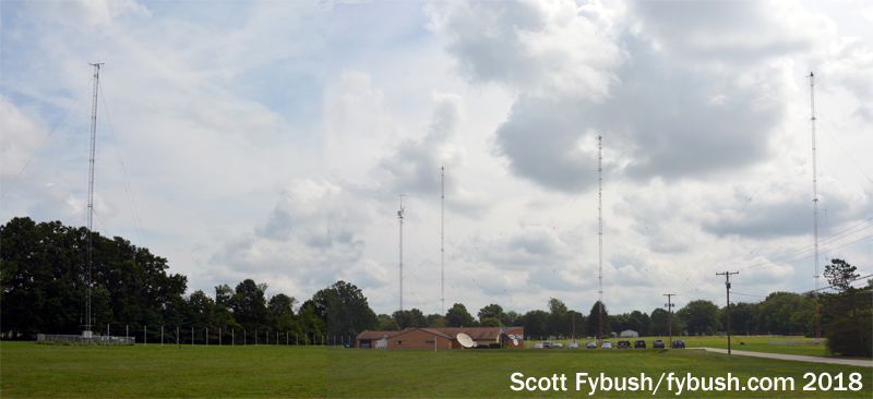 WDPN (1310) uses three towers by day, all four at night from this studio/transmitter site on the outskirts of Alliance, sharing the building with the studios of FM sister WDJQ (92.5), which rimshots both Youngstown and nearby Canton. Perhaps on our next trip through this area, we’ll get a chance to stop by for a tour of this facility, which has launched a lot of radio careers over the years.