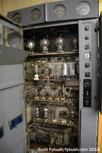 The transmitter room at the back of the building still has that 1938-vintage Western Electric, lined up next to the much newer GatesAir transmitter that now powers WPIC’s 1300-watt signal. WPIC’s old AM studios look in to the transmitter room in one direction, and into the old WYFM studio in the other. (Check out those amazing sound treatment walls in what eventually became the FM studio – you just know that at one time, live local music must have been played in that room!)