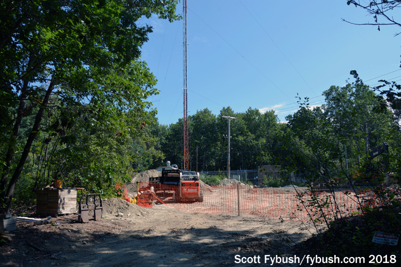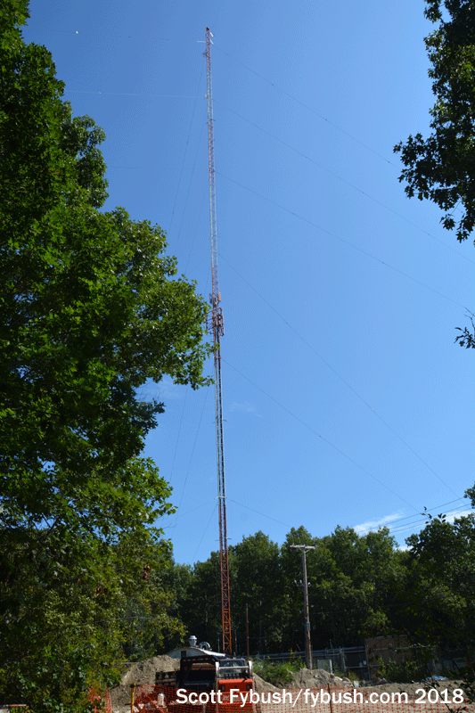 And what’s that running up the middle of the tower? It’s the tuned feed section for WNTN (1550), which moved here last year from the old studio/transmitter plant on Rumford Ave. in Newton where it had started back in 1968. (Bob spent some of his early radio years working there – and also spent time at 1430 when it was WXKS AM!)