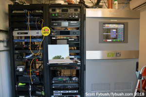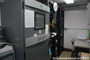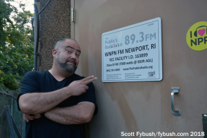 Aaron is the chief engineer of Rhode Island’s public radio stations, which have been going through a whole bunch of transformations. That new name, “The Public’s Radiiiiiiiiiiio”? While the sign was up at the new transmitter building, that new branding for the former Rhode Island Public Radio hadn’t yet been officially unveiled when we visited at the very end of August.
