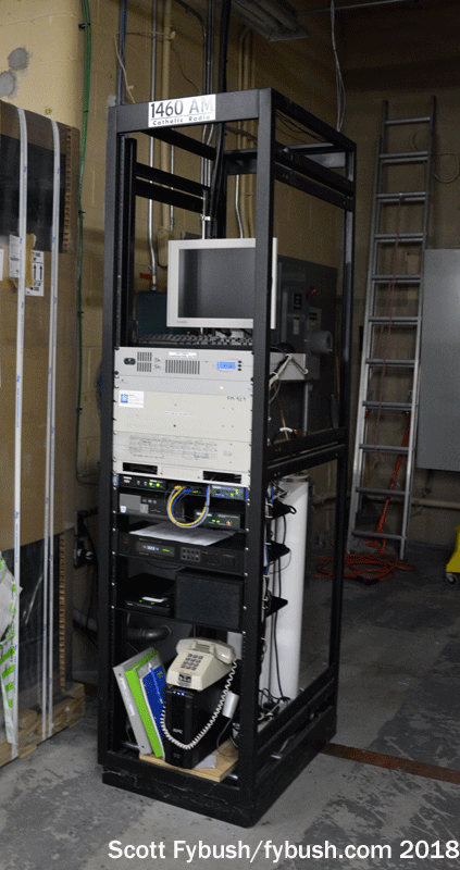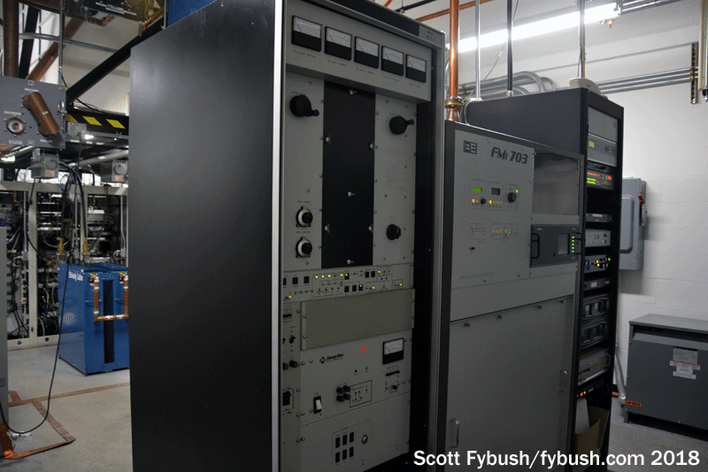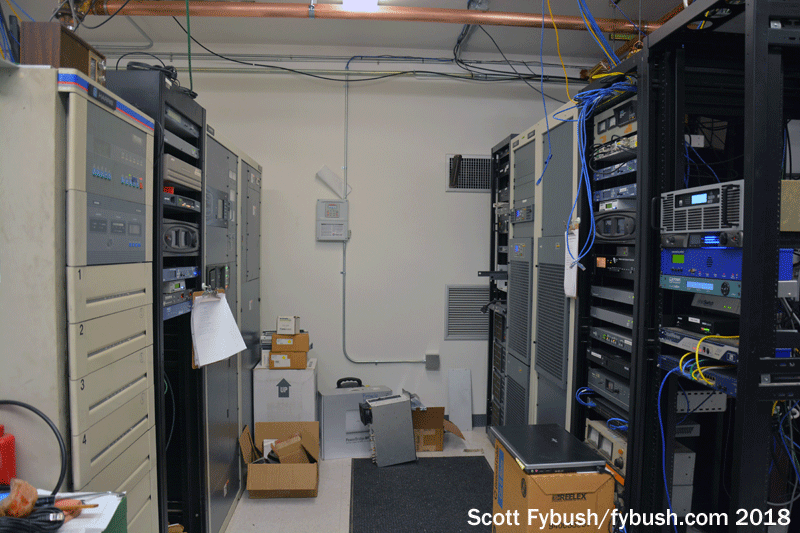 And the outer room in the building is full of full-power FM – there’s the Entercom pair of WCMF (96.5)/WPXY (97.9), whose mirror-image analog/HD setup we’ve shown you plenty of times before in this space, as well as WPXY’s top-40 rival, iHeart’s WKGS (106.7), with its own row of transmitters tucked into the very front of the room.