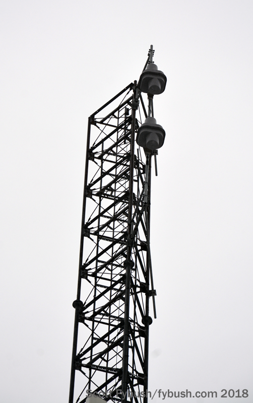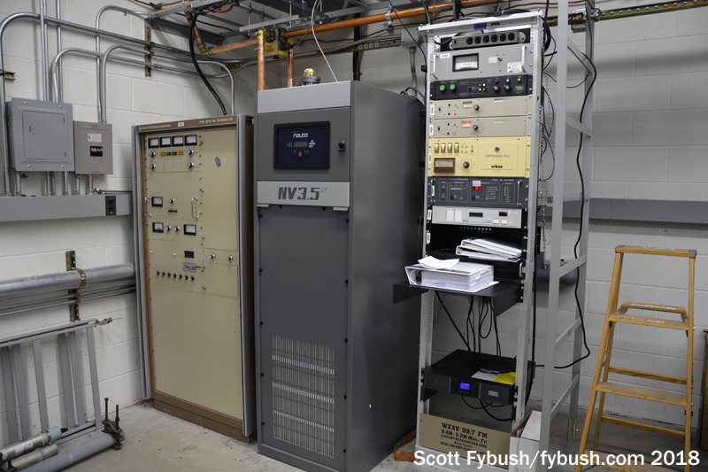 WXIR’s transmitter sits in a storage room in back, and its two-bay Shively antenna conveniently fit right on the old microwave tower behind the building on Gorham Street. (Looking for it? Drive past the Genesee Brewery and turn right – it’s just around the corner!)