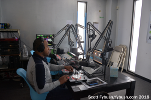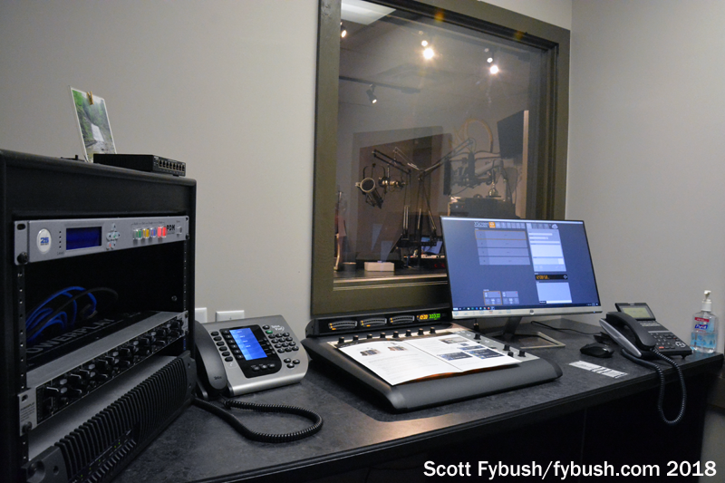 Anyway – in addition to TV studios and editing rooms, the old cable building had plenty of space on the first floor for a big radio suite, including a corner air studio, a conference room and another room that’s used to record talk shows and interviews.