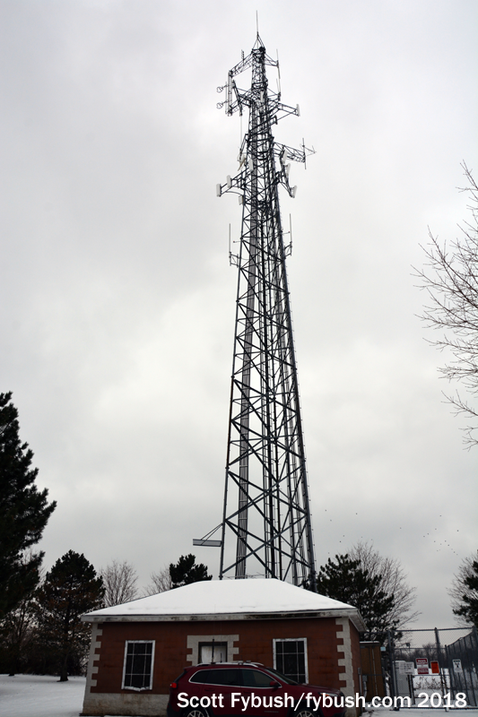 We just showed you Baker Hill, right at the southeastern corner of Monroe County, a few months back. At that point, our friend and colleague Mark Humphrey was just getting started installing a new Nautel transmitter for WZXV (99.7 Palmyra), the Calvary Chapel of the Finger Lakes religious station that feeds an extensive translator network across western and central New York in a daisy chain that starts up here. When we returned over the winter, there was another new station up here, too: the Finger Lakes Radio Group’s WCGR (1550 Canandaigua) used the new 25-mile rule to put a potent translator up here on 100.1, W261DR – and it’s now running a cool classic rock format as “The Lake,” also heard on a second big translator up on Bristol Mountain, W283BF (104.5), and serving a big chunk of the Rochester market these days.