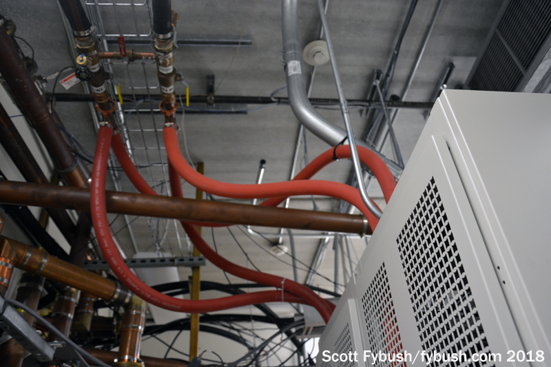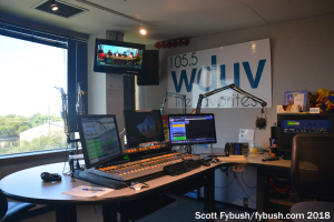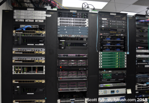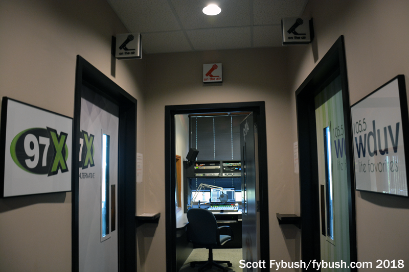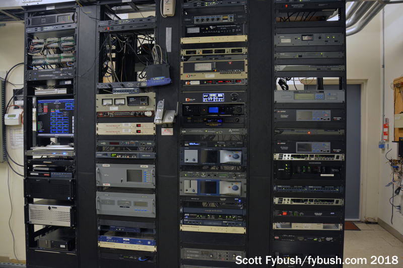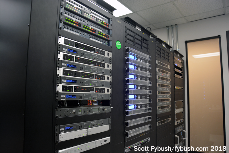 This corner of the building also has the studio for the cluster’s top-40 station, WPOI (Hot 101.5), and the rack room for all six stations.