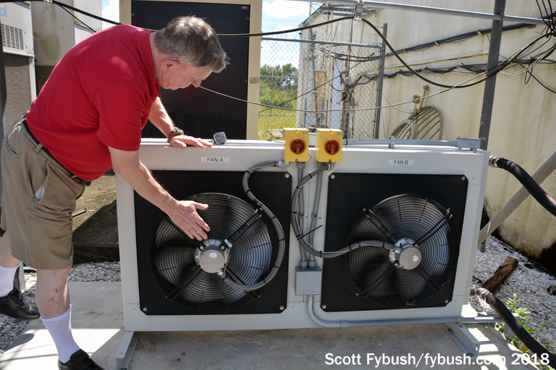 It’s run flawlessly ever since, Ed tells us almost two years later as he shows off the simple plumbing that circulates glycol through the transmitter and out to heat exchangers just outside the building.
