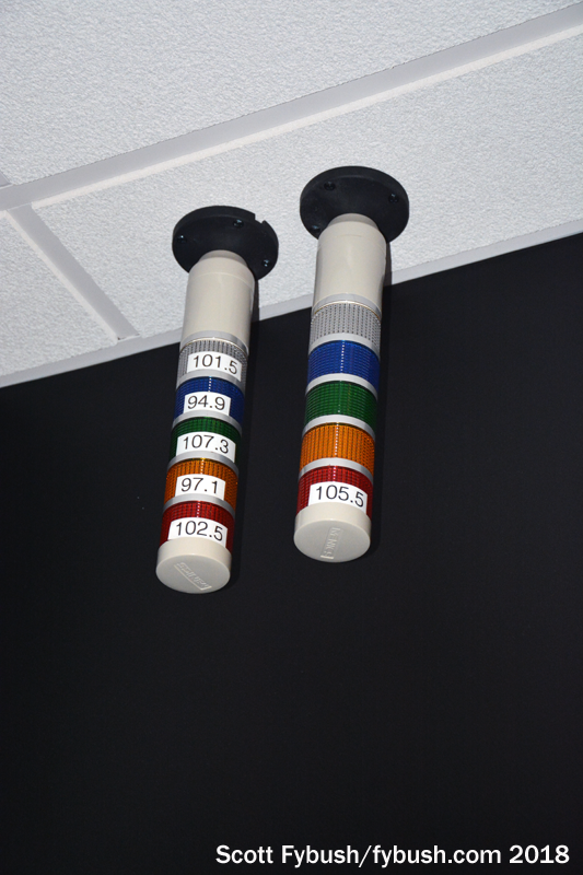 And since this studio is live more than any other station in the building, there’s lighting hanging down from the ceiling to show the board op whether any of the other five stations (or the Bone itself) have a silence sensor tripping.
