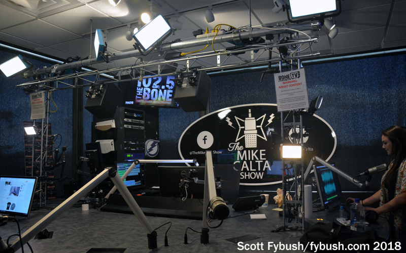 Continue down the hall and – wait, is this a TV station? No, not exactly, but there’s a unique radio station here as part of the cluster. WHPT (102.5 Sarasota) is “the Bone,” a name that usually connotes some sort of hard-edged classic rock. This “Bone,” though, is a hot talk station of a flavor that’s now fairly specific to Florida. Like the other big example of the format, iHeart’s WTKS (Real Radio 104.1) up in Orlando, the Bone aims at a young male audience with local talk shows all day and well into the night.