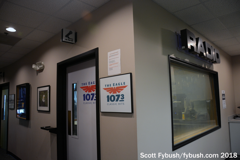 The other four are in another set of studios down the hall, circling back around toward the lobby: classic rock WXGL (Eagle 107.3) has a studio looking out toward the lobby, with some neat history on the wall by the studio door.