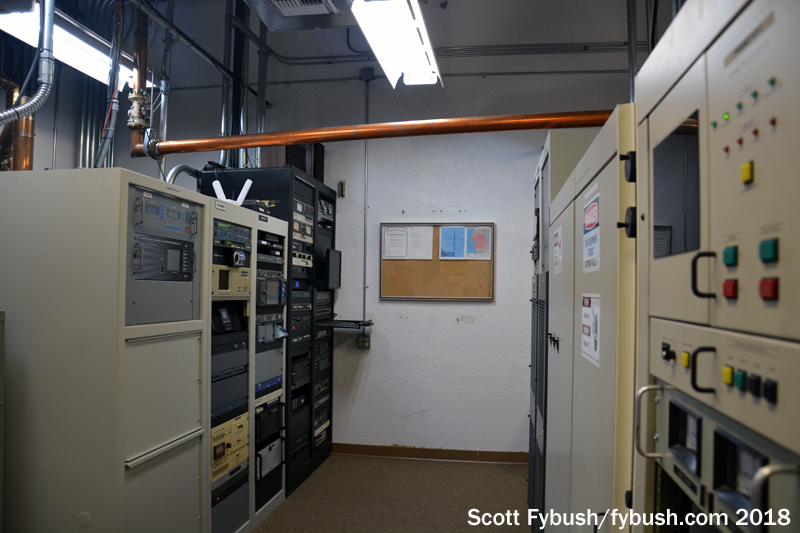 Around a corner at the end of the hall are several smaller rooms occupied by LPTVs and by Cox’s two FMs here, which haven’t changed much since our 2011 visit – WWRM (94.9) and WPOI (101.5) still side by side in the rooms they occupied when this site was first built out at the turn of the millennium.