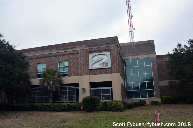 What was originally WUSN (Channel 2) signed on from Coleman Boulevard, right by the foot of the US 17 bridge to Charleston, back in 1954. It had its transmitter here back then, too, and part of that tower still stands long after the channel 2 (now WCBD) transmitter moved north to Awendaw in the 1980s. Two FM stations, LM Communications’ WYBB (98.1 Folly Beach) and WCOO (105.5 Kiawah Island), transmit from the shortened old WCBD tower, as do a couple of Calvary Chapel translators, fed by satellite from Idaho.