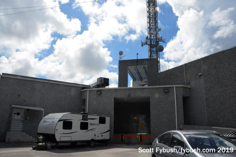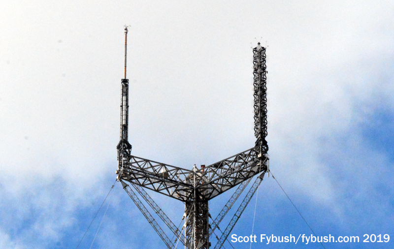 We didn’t get in to any of the TV rooms, but we did see the two FMs here: even though American Tower installed a massive FM panel antenna on one arm of the candelabra and left lots of space for combiners and transmitters, it’s just two former CBS-owned FMs here, the main transmitter for WKIS (99.9) and the aux for WPOW-FM (96.5), which remained here even after changing hands from CBS to Beasley to Entercom.