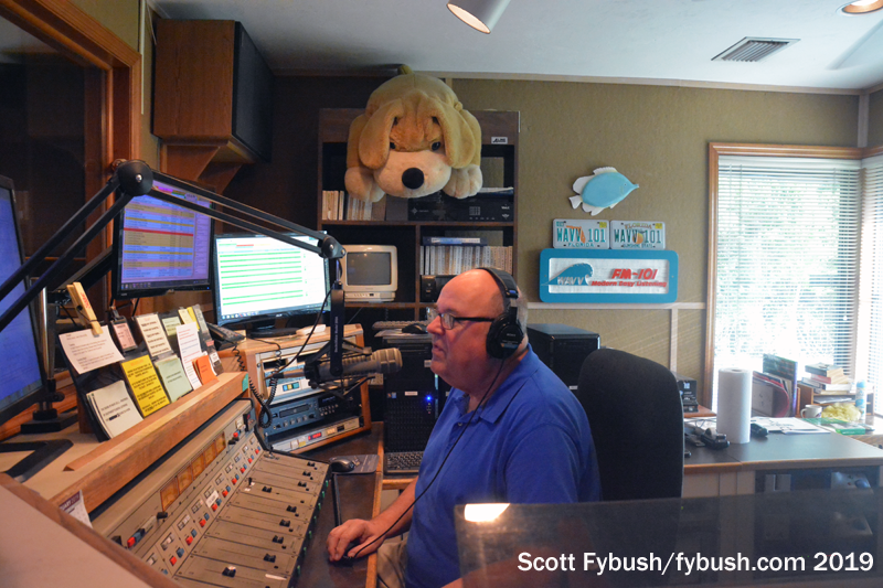 The oldies format is the brainchild of our host this afternoon, Al Baxa, who’s also on the air on the main WAVV while we’re visiting, from a studio that’s still lined with CDs.