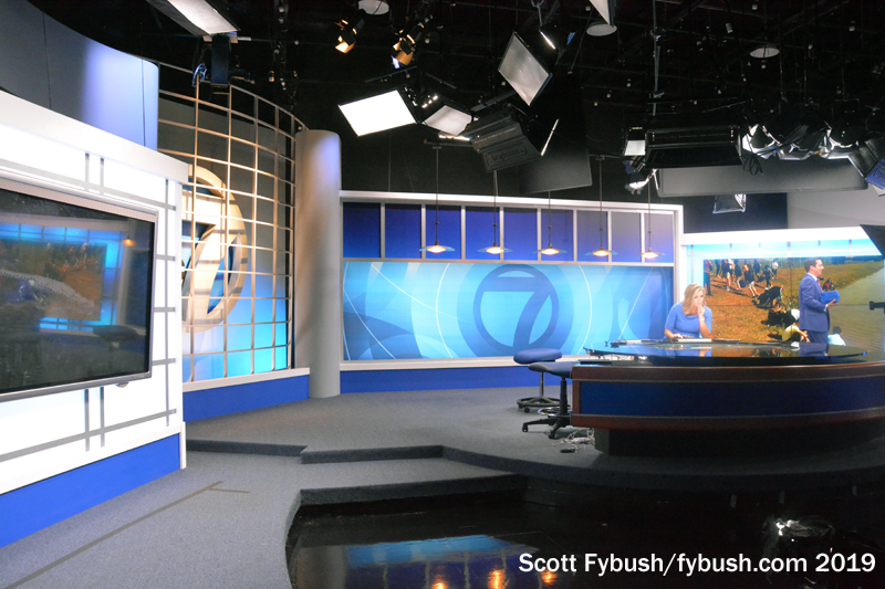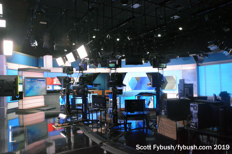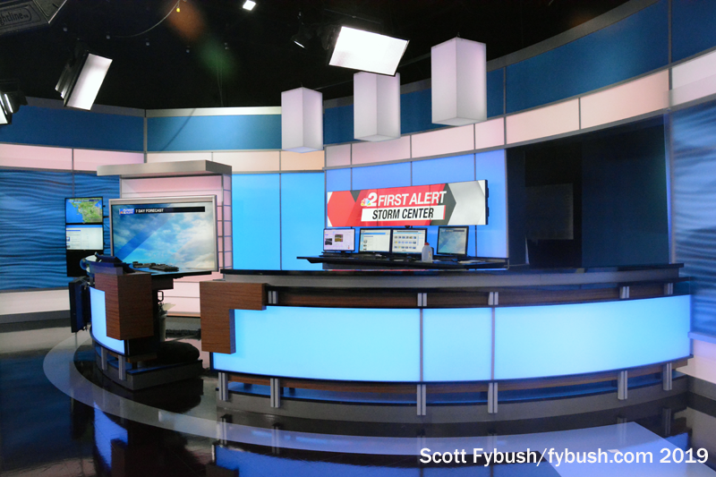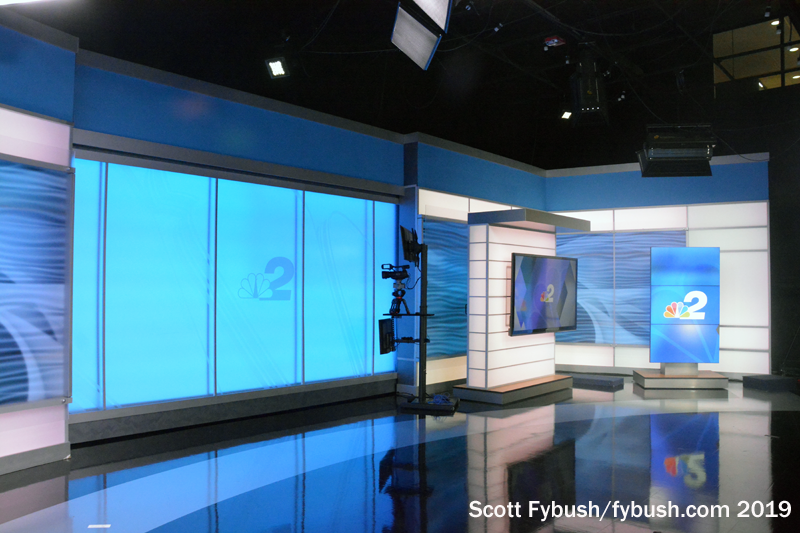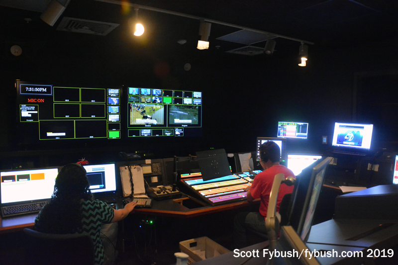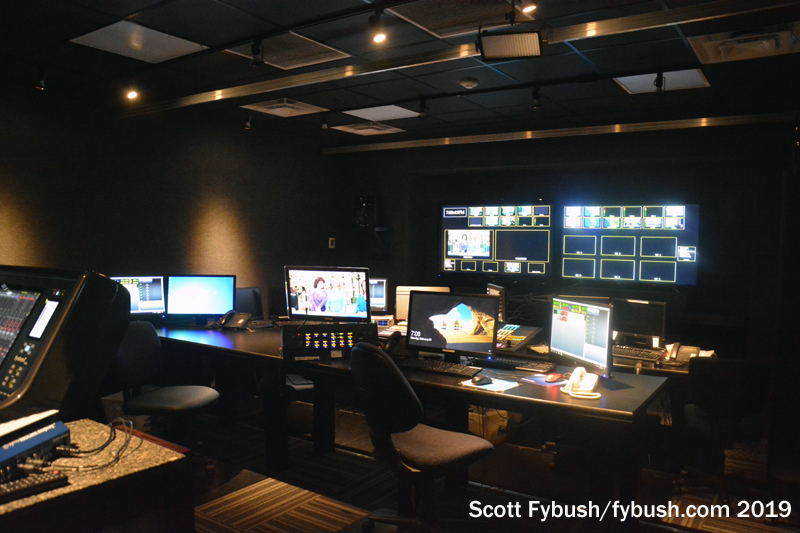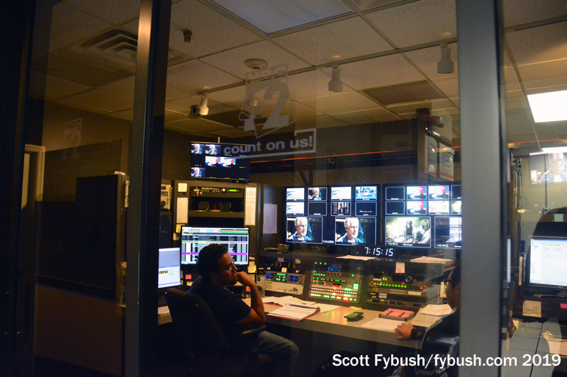 Each station here has its own control room adjacent to its studio, allowing both stations to originate their own newscasts in most time slots. (We showed up just after 7, when WBBH was in syndicated programming but WZVN was on the air with local news.)